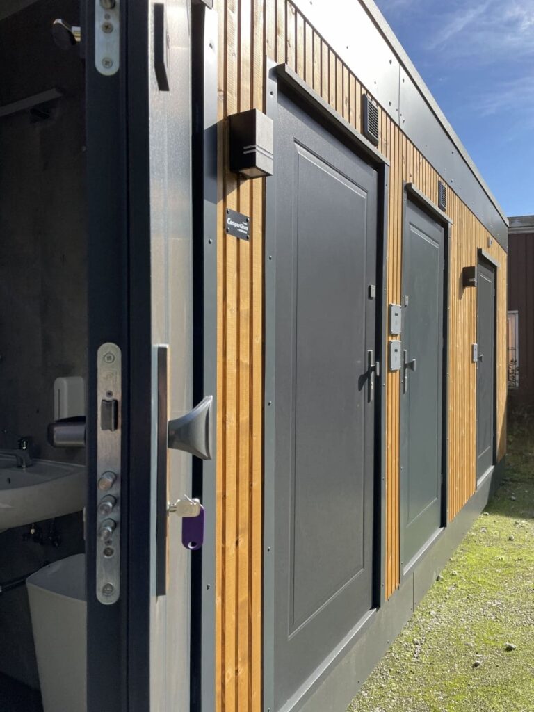 CamperClean bietet modulare Sanitäranlagen, die höchsten Komfort und Hygiene bieten. Diese Module sind individuell anpassbar und beinhalten wassersparende Armaturen, umweltfreundliche Reinigungsmittel und moderne Ausstattung.